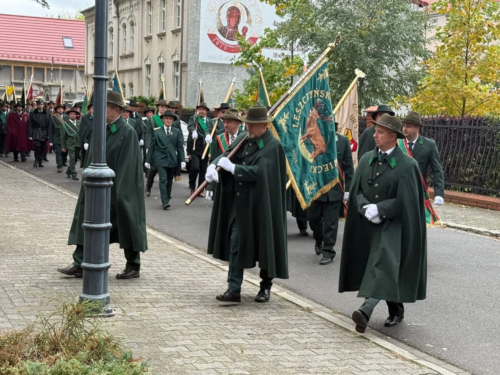 Przed mszą, na rawickim rynku, sformowany został pochód z udziałem zaproszonych pocztów sztandarowych kół łowieckich i gości. Pochodowi ulicami miasta, do Kościoła Chrystusa Króla i Zwiastowania NMP, towarzyszyła Orkiestra Dęta z Miejskiej Górki.
