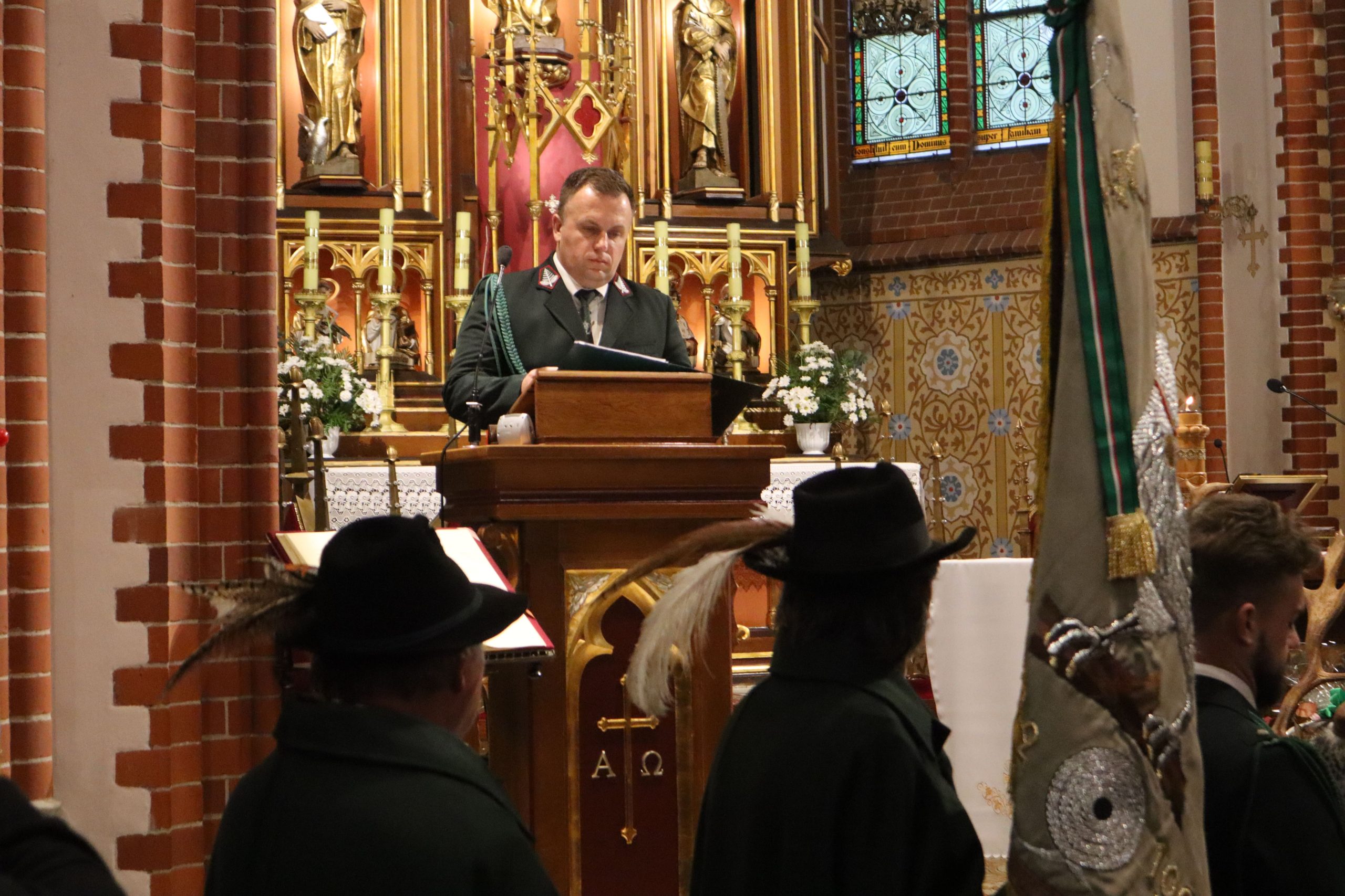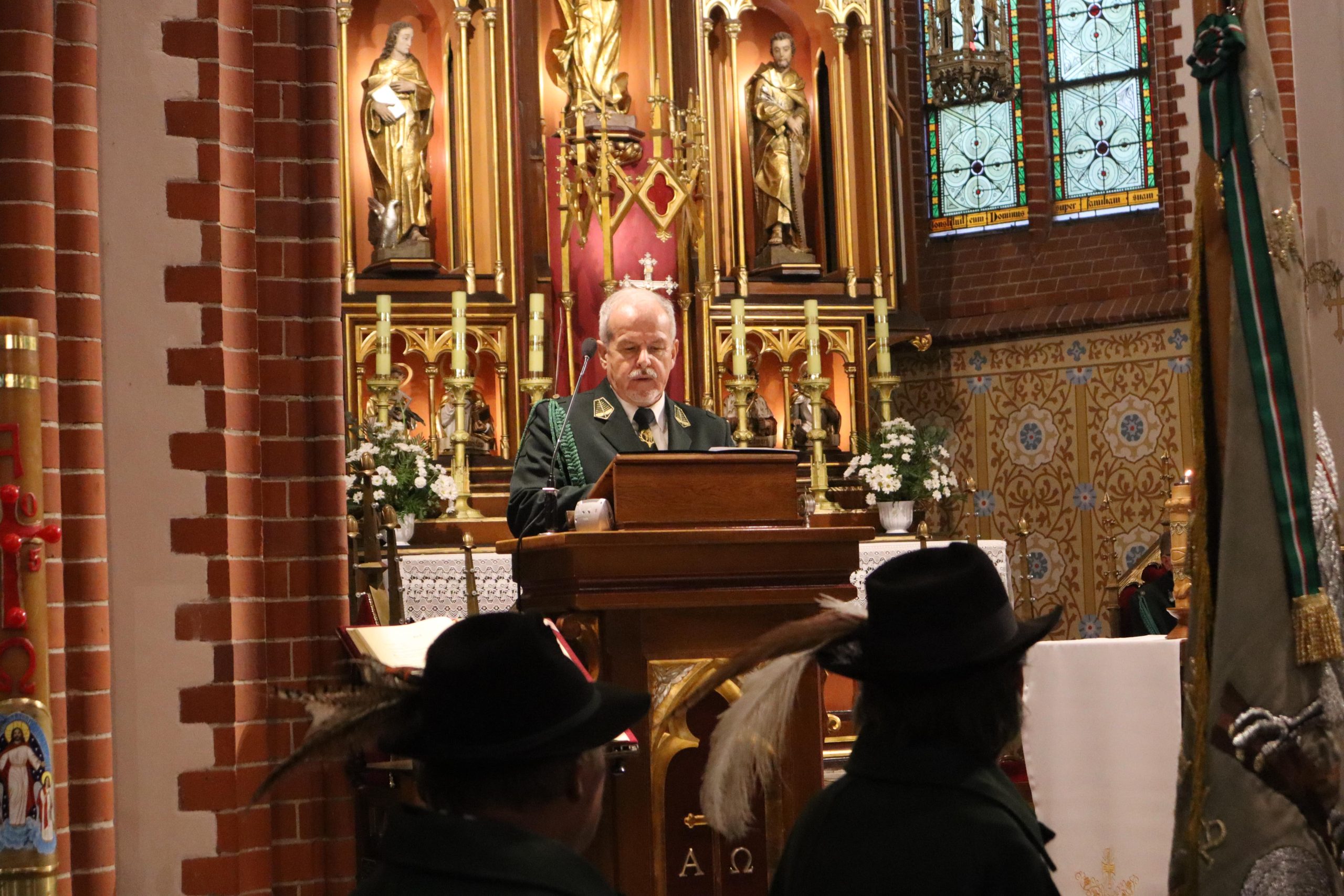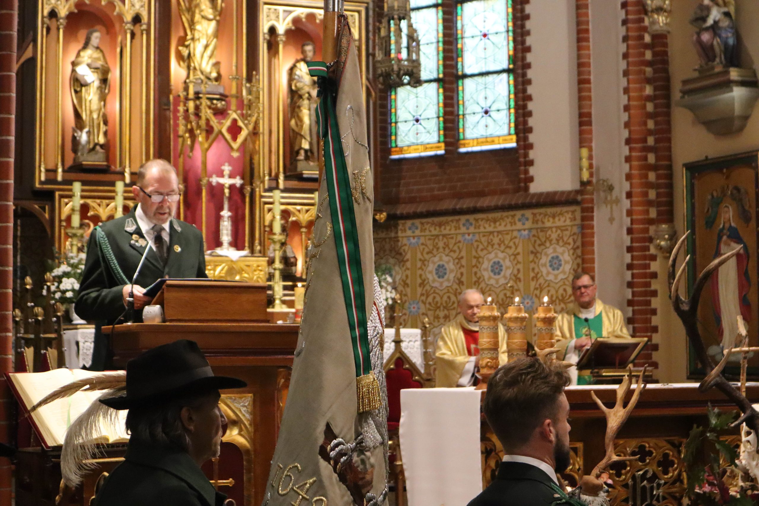 mszy w rawickiej farze wzięły udział poczty sztandarowe ponad 20 kół łowieckich z okręgu leszczyńskiego, posłanka na Sejm RP Lidia Czechak, przedstawiciele władz samorządowych powiatu z Wicestarostą Jakubem Morysonem, Burmistrzem Miejskiej Górki Karolem Skrzypczakiem, Burmistrzem Jutrosina Romualdem Krzyżosiakiem, i Wójtem Pakosławia. Imprezę uświetnili również przedstawiciele rawickiego i jutrosińskiego Bractwa Kurkowego, Powiatowego Koła Hodowców Koni w Rawiczu, OSP Izbice oraz Oddziału Powiatowego Związku Ochotniczych Straży Pożarnych Rzeczypospolitej Polskiej w Rawiczu. Wśród uczestników był członek Naczelnej Rady Łowieckiej kolega Grzegorz Brzeskot oraz Łowczy Okręgowy kolega Janusz Motwicki.