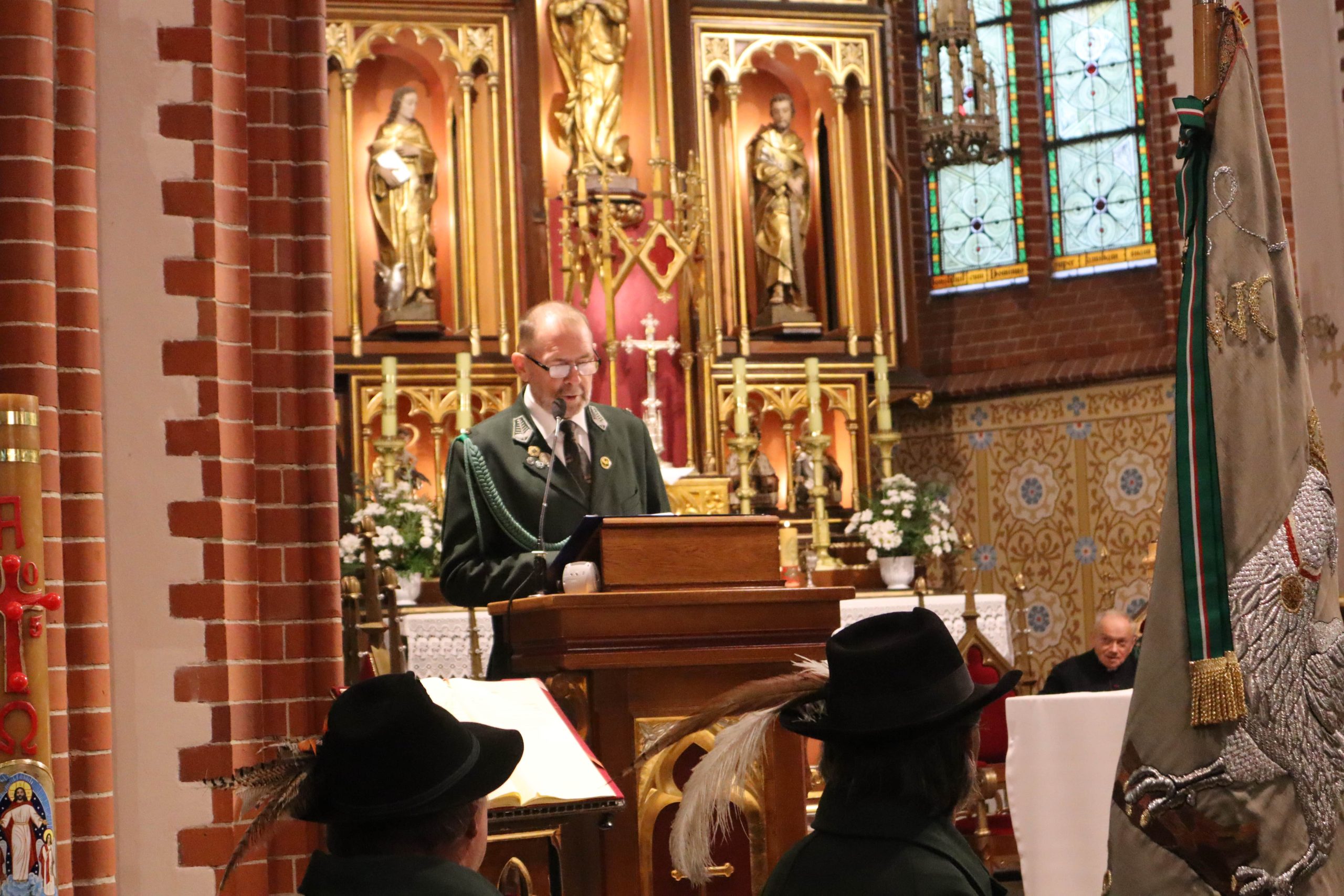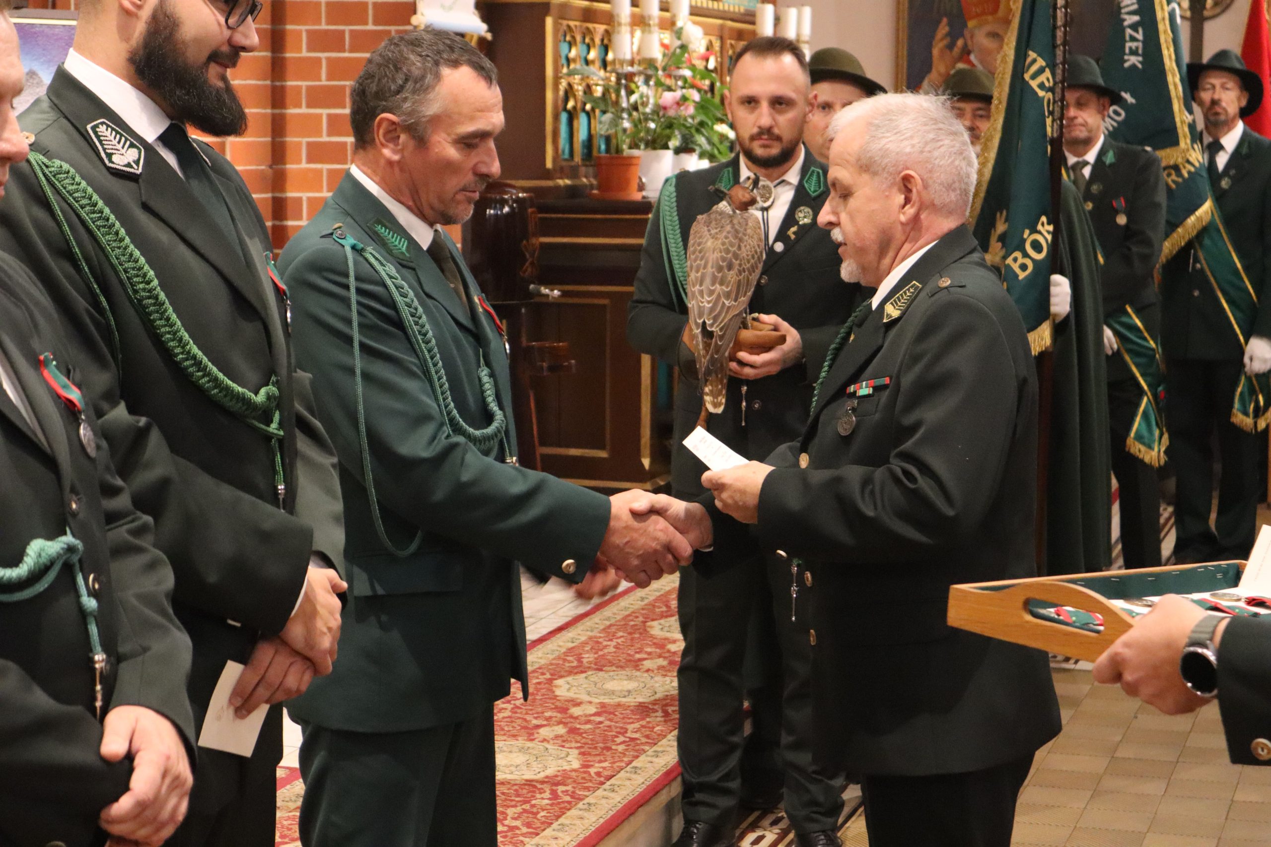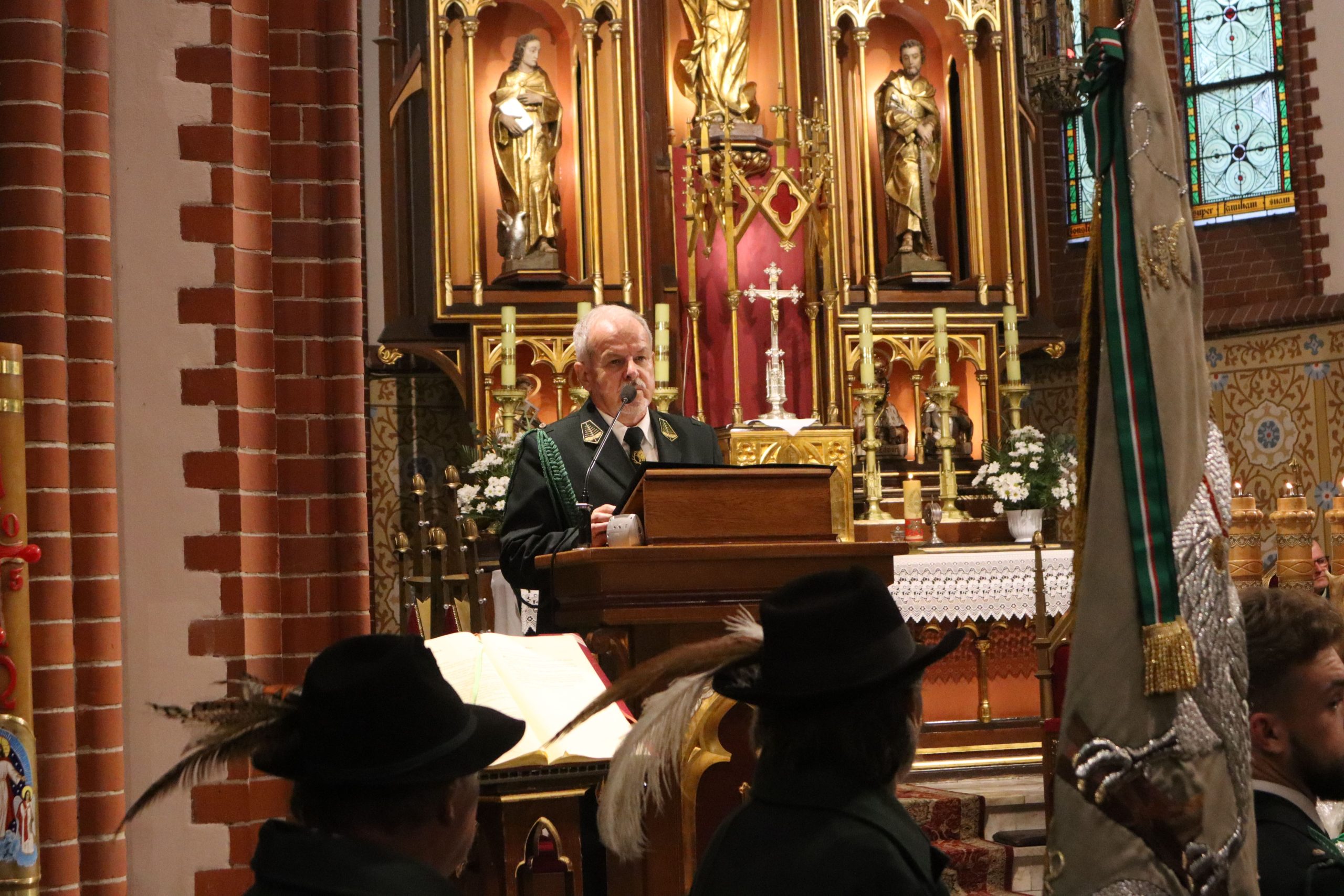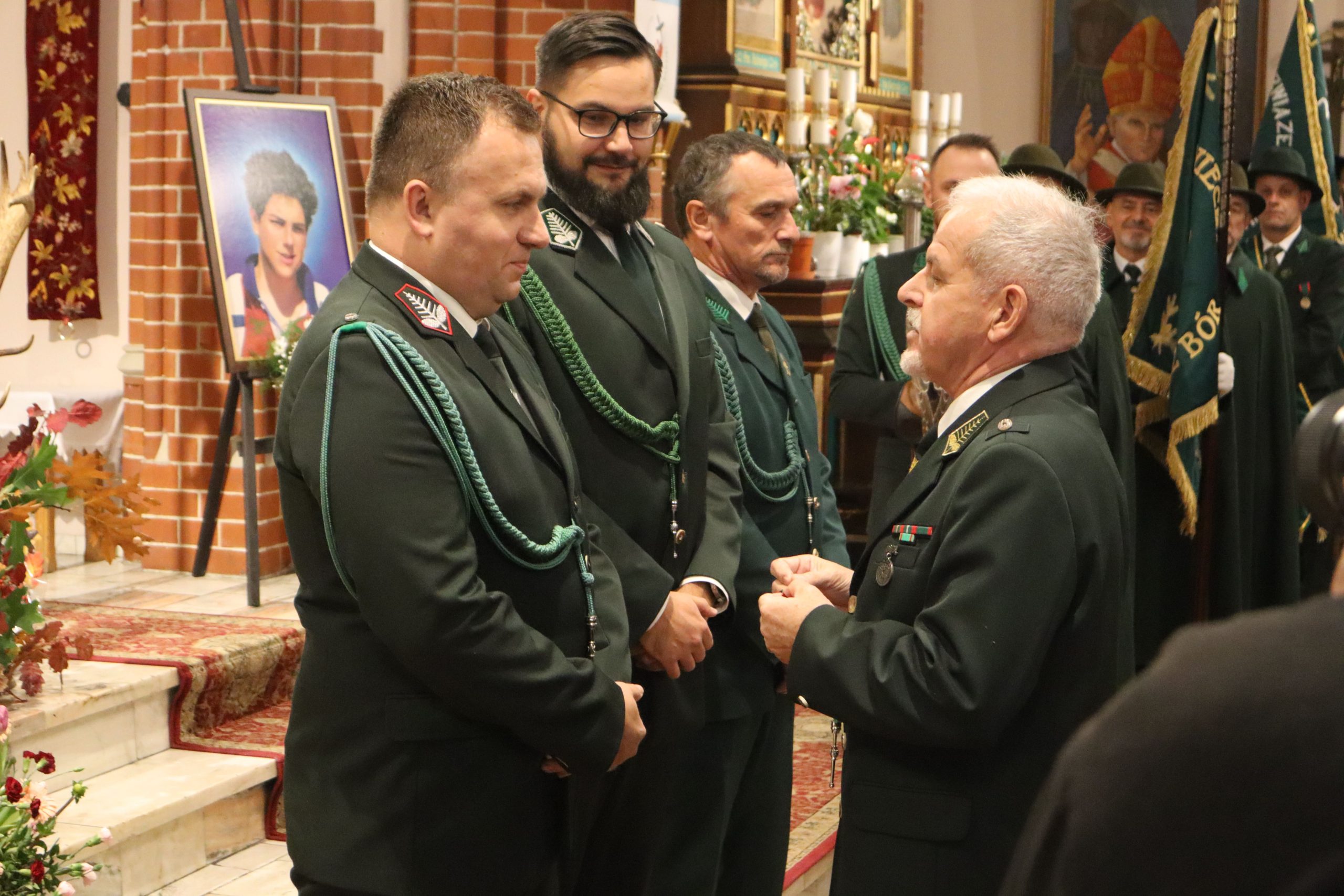 mszy w rawickiej farze wzięły udział poczty sztandarowe ponad 20 kół łowieckich z okręgu leszczyńskiego, posłanka na Sejm RP Lidia Czechak, przedstawiciele władz samorządowych powiatu z Wicestarostą Jakubem Morysonem, Burmistrzem Miejskiej Górki Karolem Skrzypczakiem, Burmistrzem Jutrosina Romualdem Krzyżosiakiem, i Wójtem Pakosławia. Imprezę uświetnili również przedstawiciele rawickiego i jutrosińskiego Bractwa Kurkowego, Powiatowego Koła Hodowców Koni w Rawiczu, OSP Izbice oraz Oddziału Powiatowego Związku Ochotniczych Straży Pożarnych Rzeczypospolitej Polskiej w Rawiczu. Wśród uczestników był członek Naczelnej Rady Łowieckiej kolega Grzegorz Brzeskot oraz Łowczy Okręgowy kolega Janusz Motwicki.